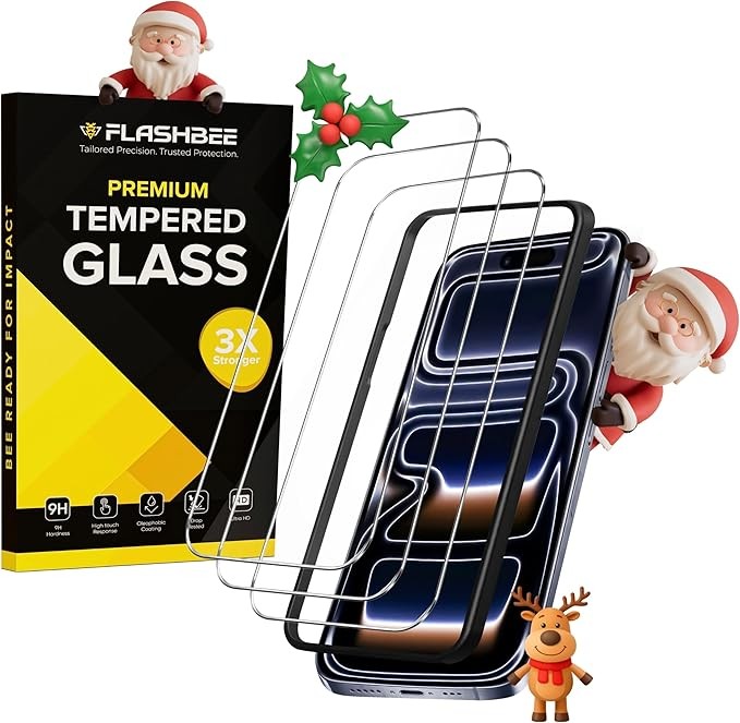 9H Tempered Glass Screen Protector with Easy Installation Frame, HD Clear, Anti-Scratch, Bubble Free, Case Friendly, Dynamic Island Compatible Tempered Glass Film